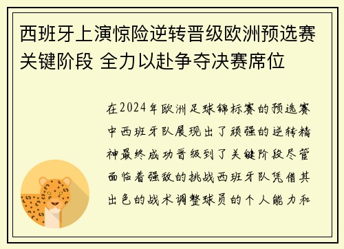 在2024年欧洲足球锦标赛的预选赛中,西...