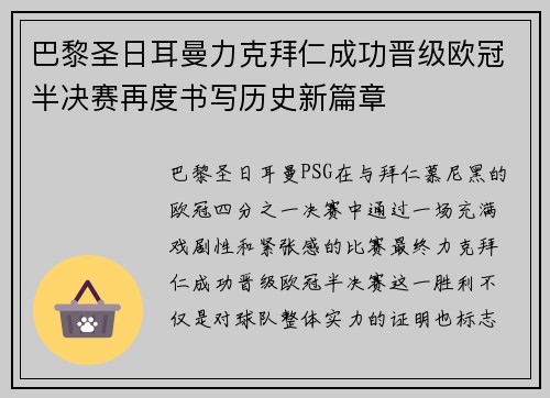 巴黎圣日耳曼(PSG)在与拜仁慕尼黑的欧...