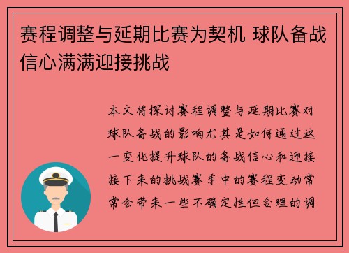 本文将探讨赛程调整与延期比赛对球队备战的...